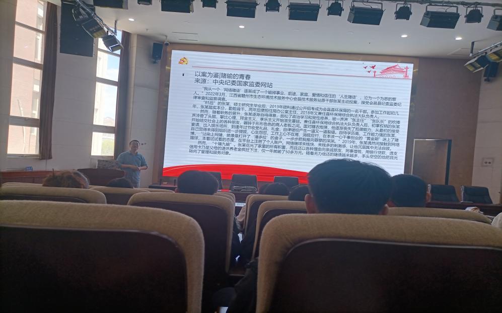 此次讲座是毕业生离校前的一堂思政课,对引导学生树立廉洁观,提高廉洁从业意识,对学生筑牢拒腐防变的思想道德防线具有重要意义。也是学院全面贯彻党的教育方针,落实立德树人根本任务,努力培养能立大志、明大德、成大才、担大任的社会主义合格建设者和接班人的重要举措。