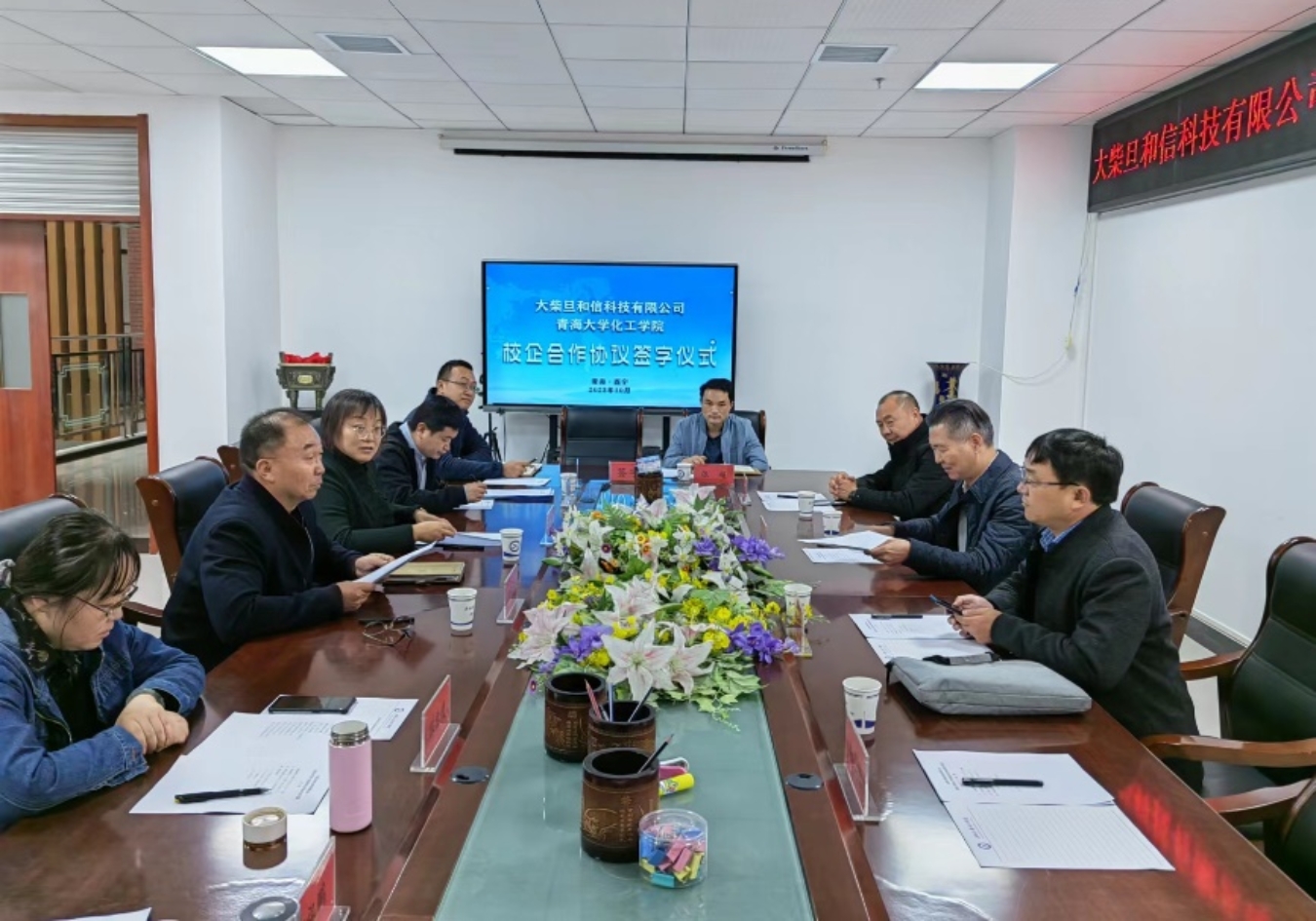 10月12日下午,动漫屋 与大柴旦和信科技有限公司在院二楼会议室举行校企合作签字仪式。和信科技有限公司董事长史志新、财务总监石建峰、销售部副经理吴立清,学院常务副院长王晓、院办公室主任樊有国、教学管理部主任郭祖鹏、学生管部主任胡鑫、化机系主任陈慧媛、化工系主任关云山、应化系主任屠兰英和相关教师代表参加了签字仪式,仪式由院党委书记杨汉宁主持。